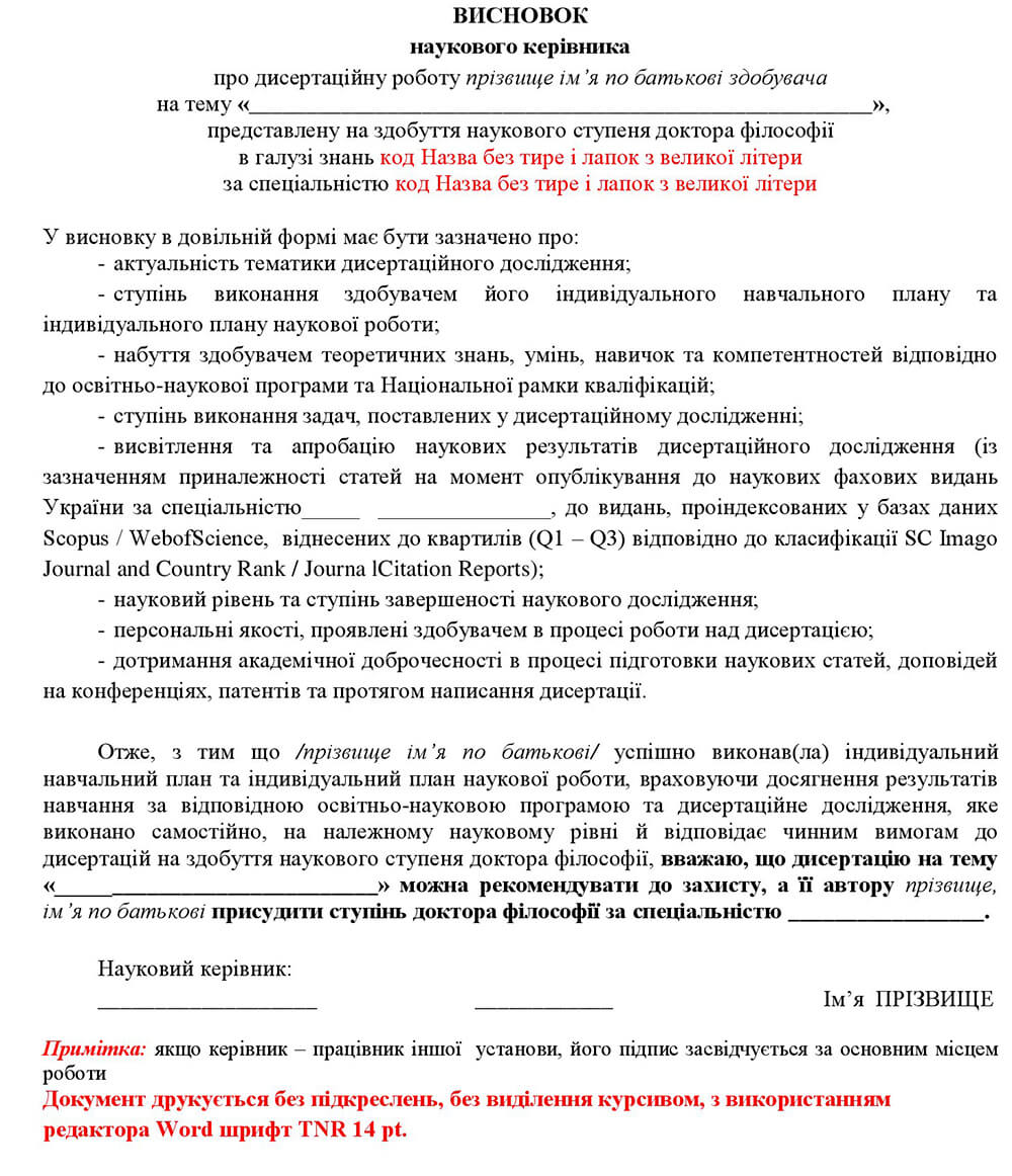 - висновок наукового керівника (керівників) (Додаток 2. Зразок 5);