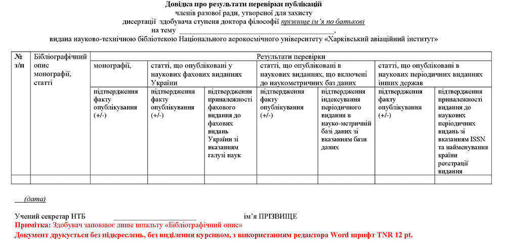 - довідку з бібліотеки Університету про наукові публікації (за науковим напрямом, за яким підготовлено дисертацію) голови, рецензентів та офіційних опонентів.