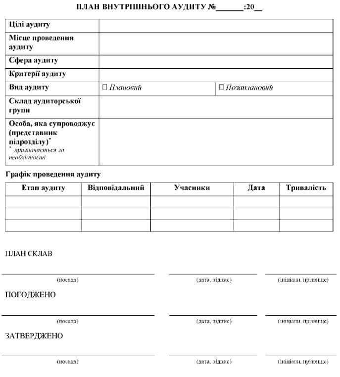 - порядок планування, організації, проведення внутрішніх аудитів та оформлення отриманих результатів;