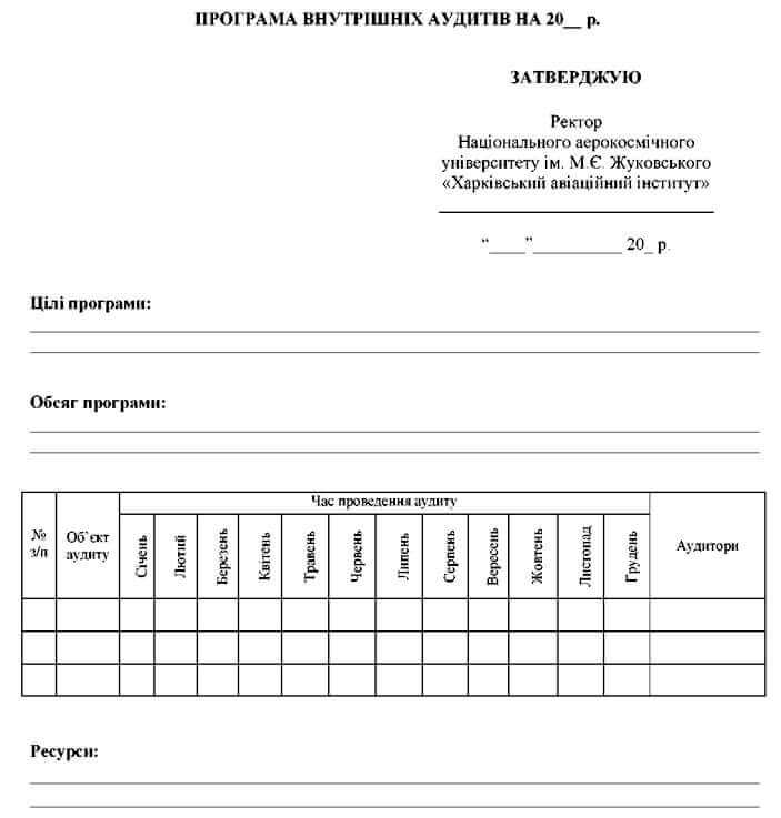 1) СУЯ ХАІ-НМВ-Ф.ВА/001 Форма програми внутрішніх аудитів;