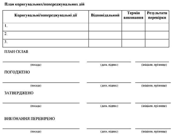 - зведений план коригувальних/попереджувальних дій і результати перевірки їх виконання;