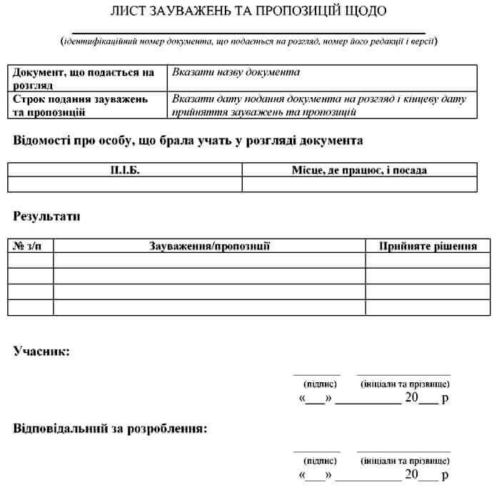 5) СУЯ ХАІ-НМВ-Ф.УД/002 Форма листа зауважень та пропозицій;