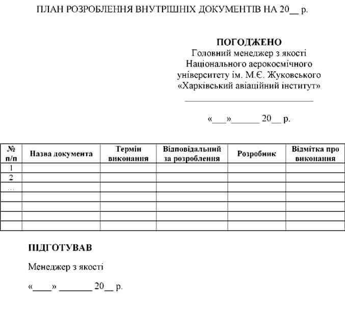 3) СУЯ ХАІ-НМВ-Ф.УД/001 Форма плану розробки внутрішніх документів;