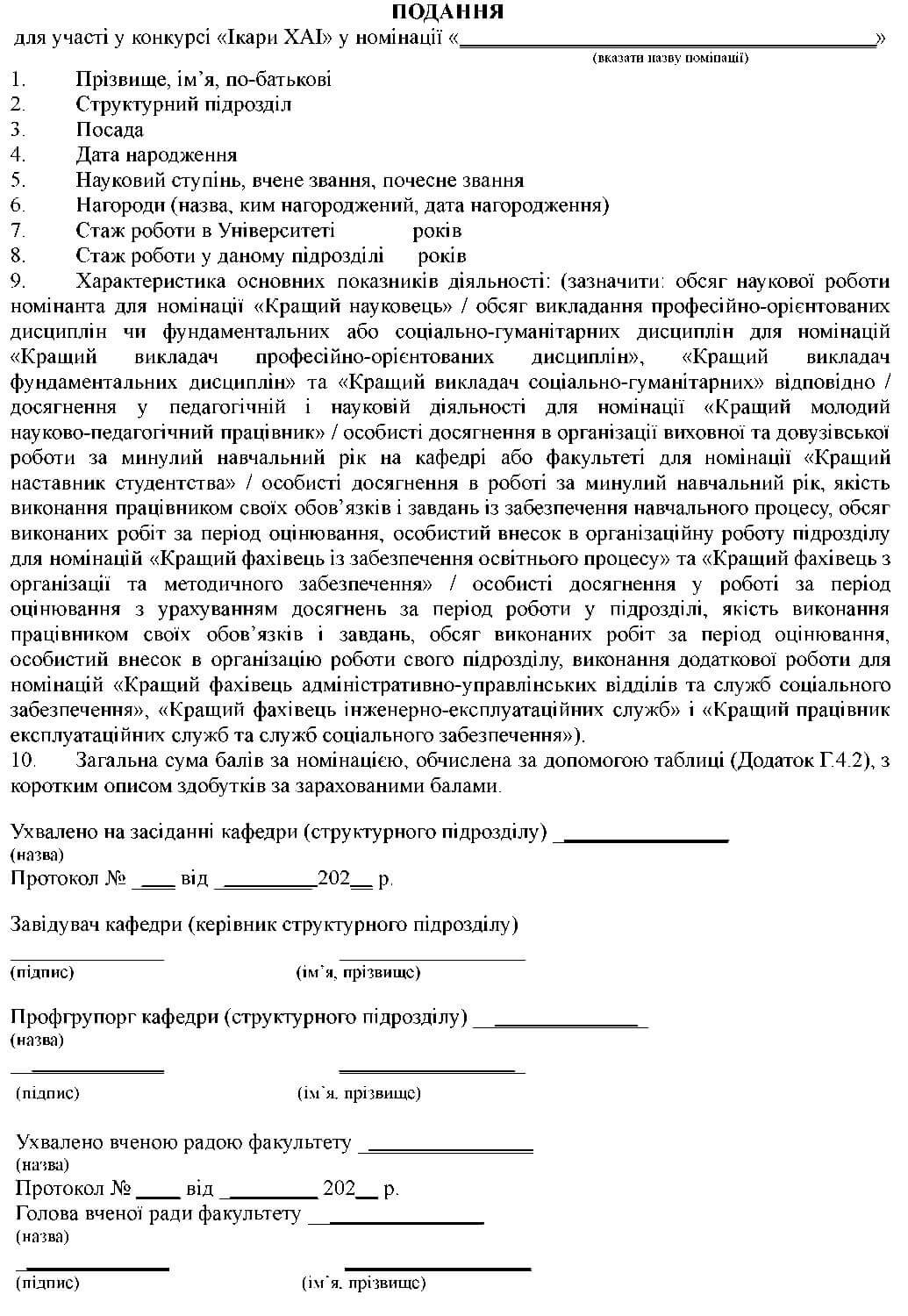 Форма подання для участі працівників Університету у конкурсі «Ікари ХАІ»