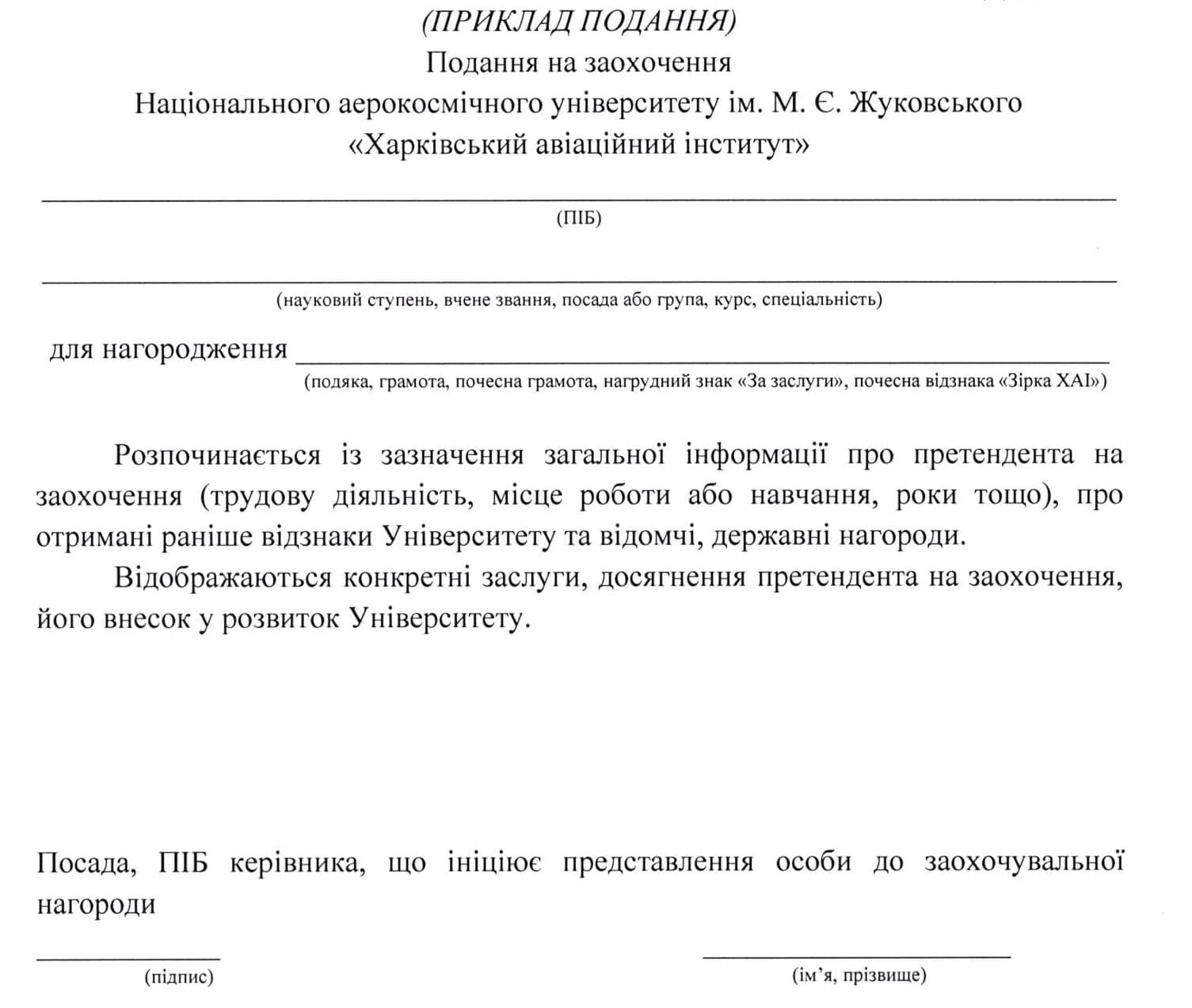 2.5. Подання на працівників Університету для представлення осіб до заохочення готується за підписом ініціатора нагородження, подання для представлення до заохочення здобувачів освіти додатково підписується деканом факультету.