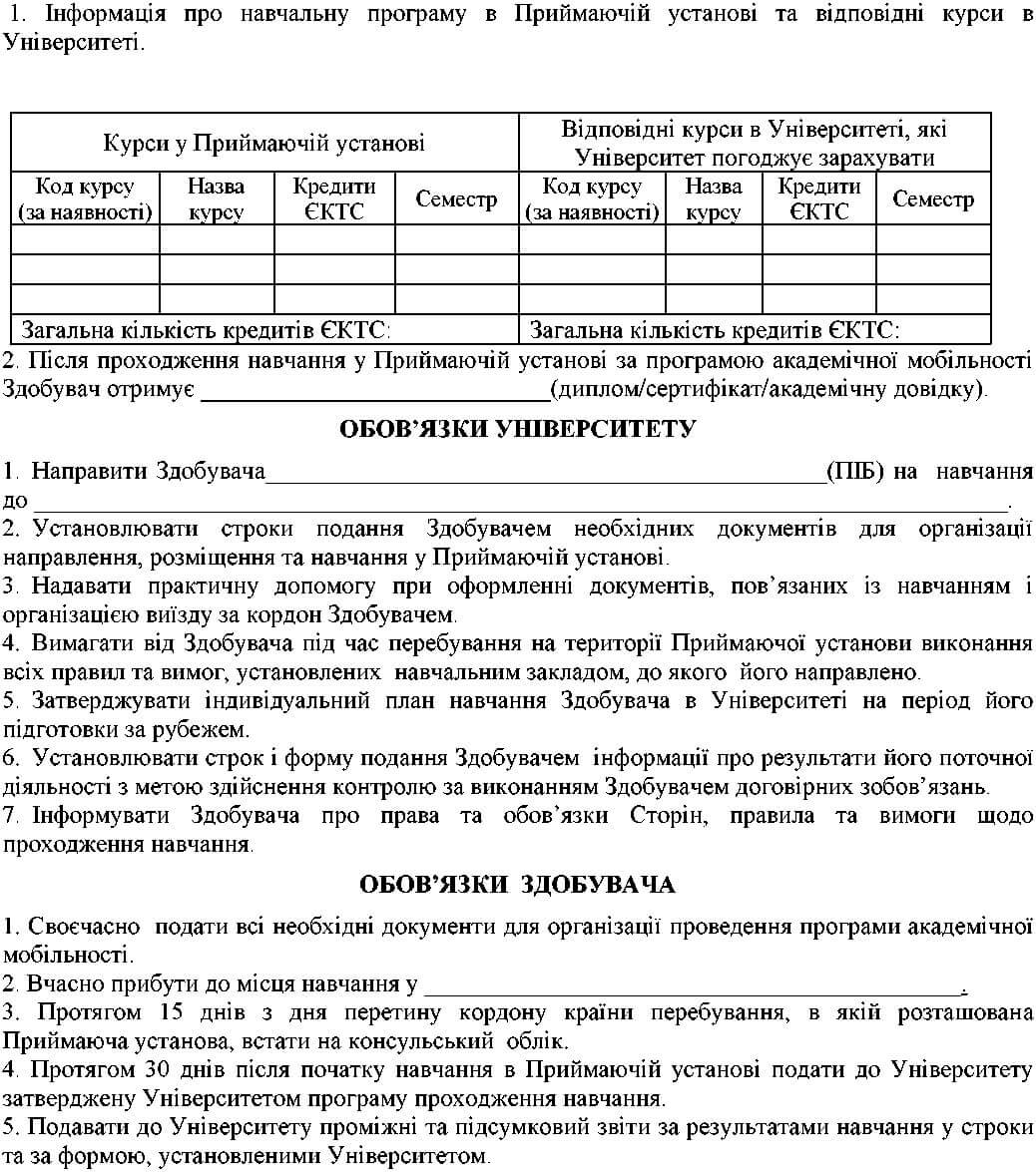 2) договір між Університетом та учасником академічної мобільності про направлення до приймаючого ЗВО-партнера у межах програми академічної мобільності (складає департамент, відповідальний за програму академічної мобільності) (див. Додатки А, Б, В);