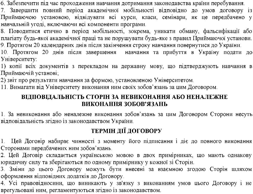 - після завершення заходів із реалізації права на академічну мобільність у ЗВО(науковій установі)-партнері вчасно повернутися до закладу вищої освіти, що направив на навчання.