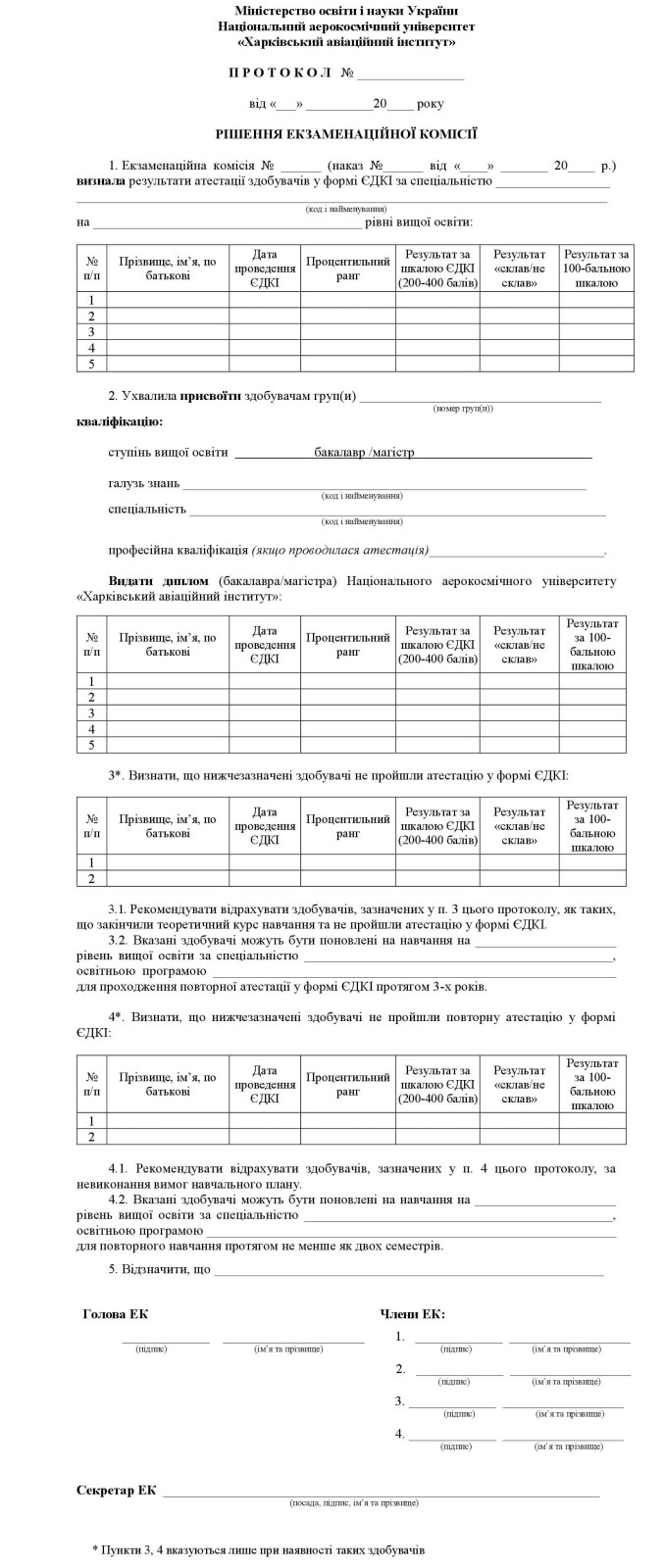 Г.2 Протокол рішення ЕК у випадку атестації здобувачів у формі ЄДКІ