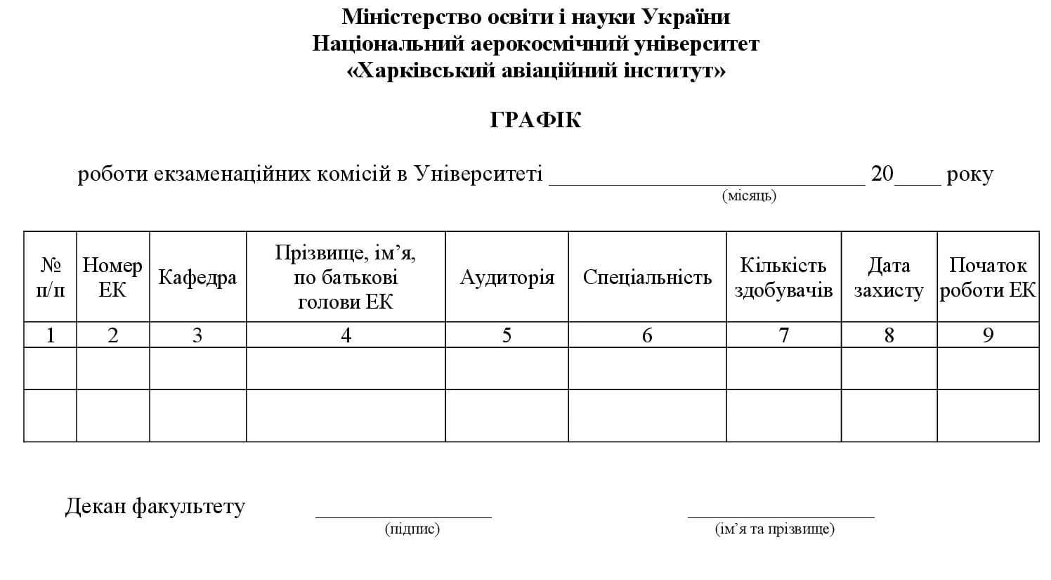 Форма подання декана факультету про персональний склад екзаменаційної комісії