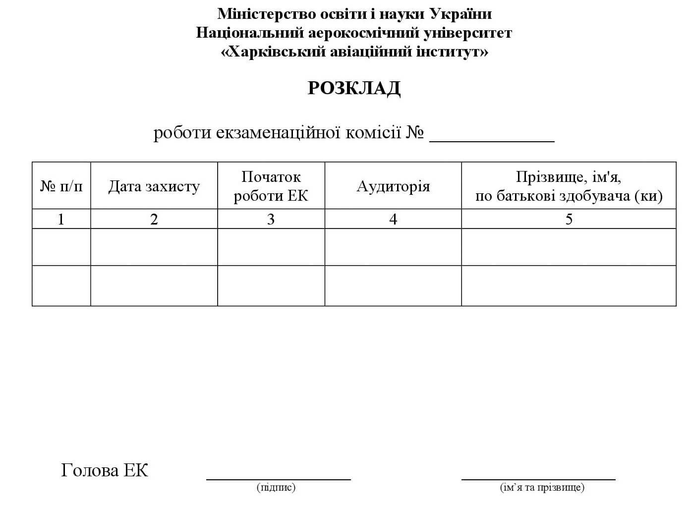 Форма подання голові ек щодо захисту кваліфікаційної роботи