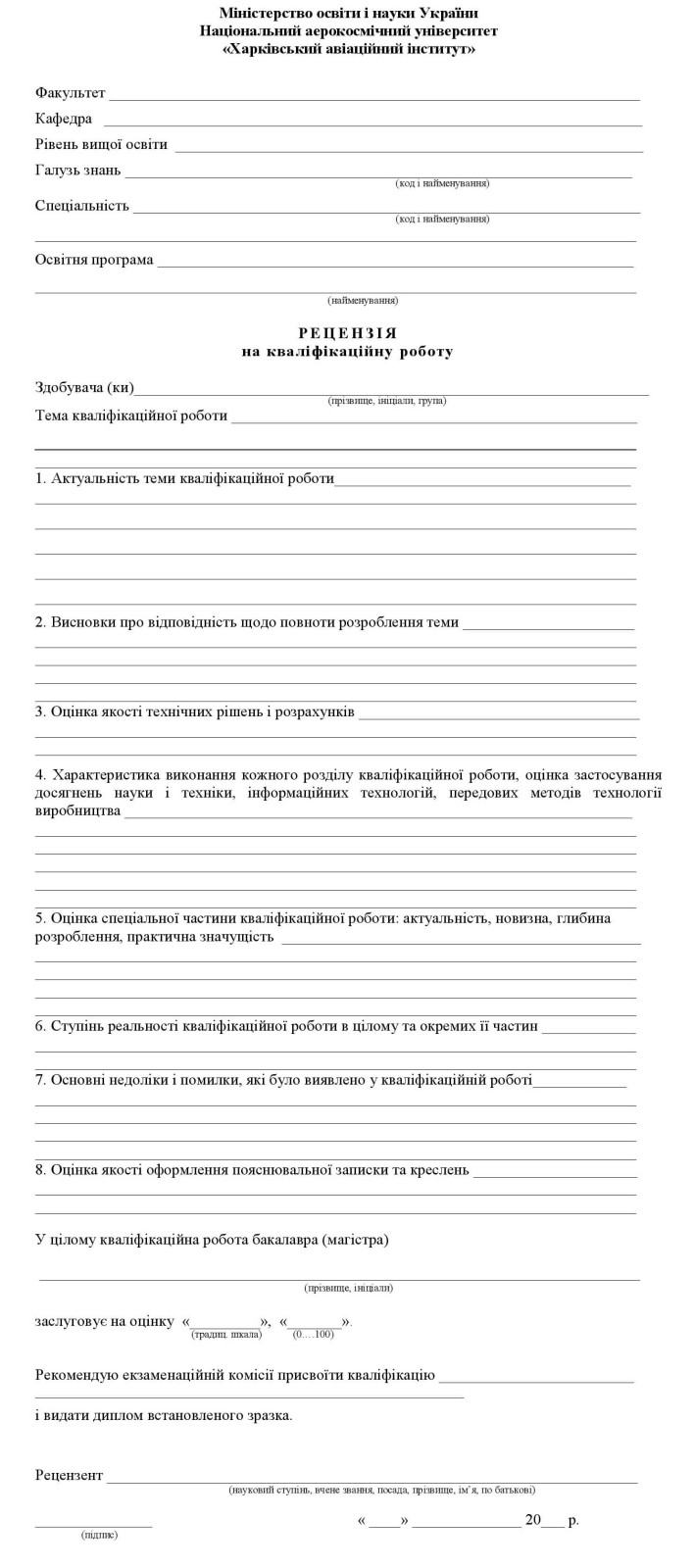 – висновки випускової кафедри та рецензію на кваліфікаційну роботу;