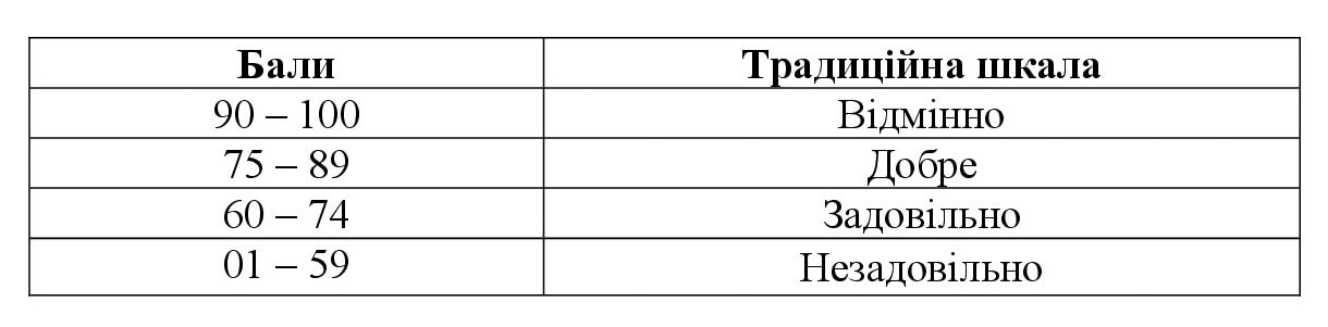 Таблиця переведення балів, отриманих за шкалою ЄДКІ, у 100-бальну шкалу
