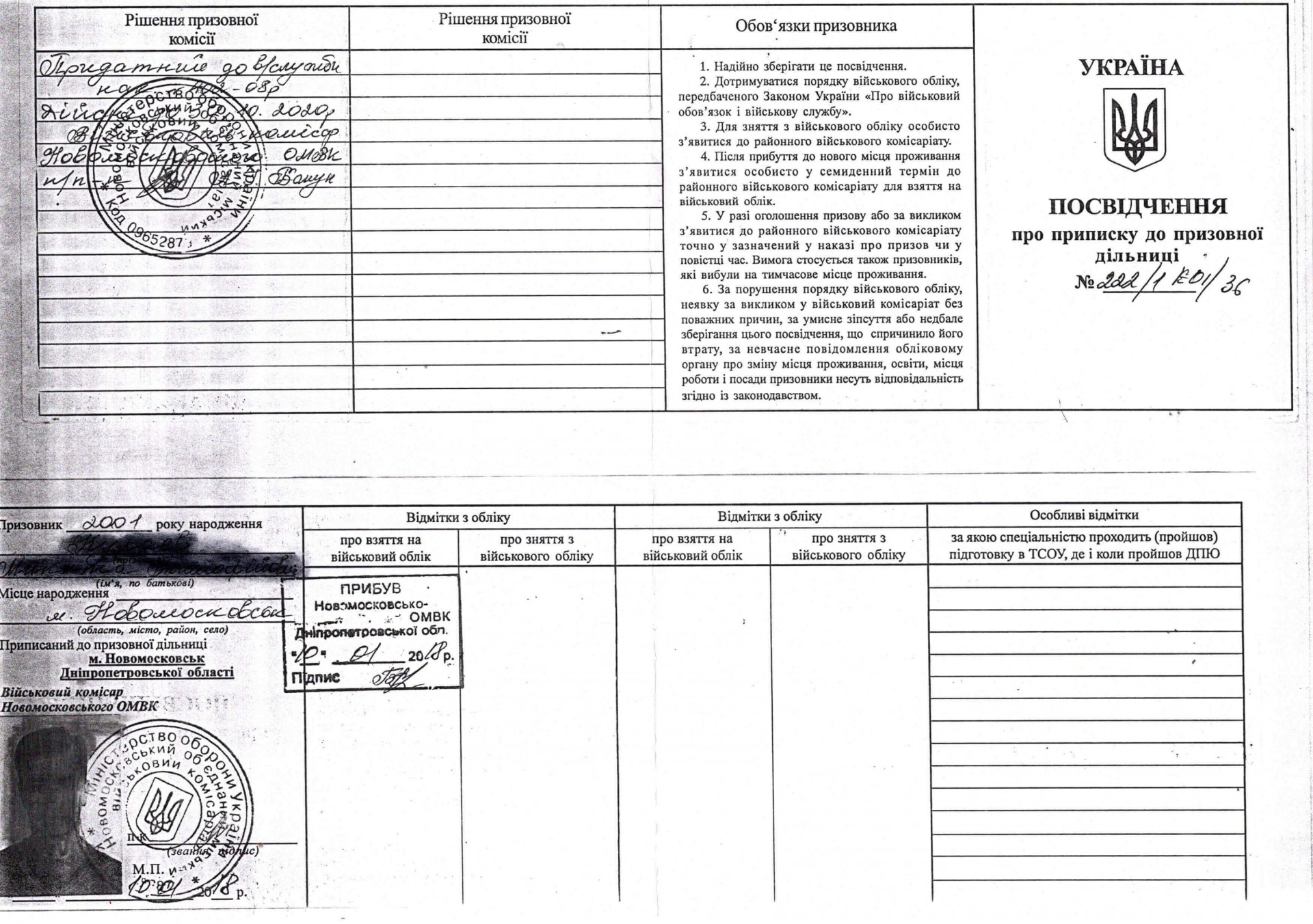 Військово-облікові документи призовників: