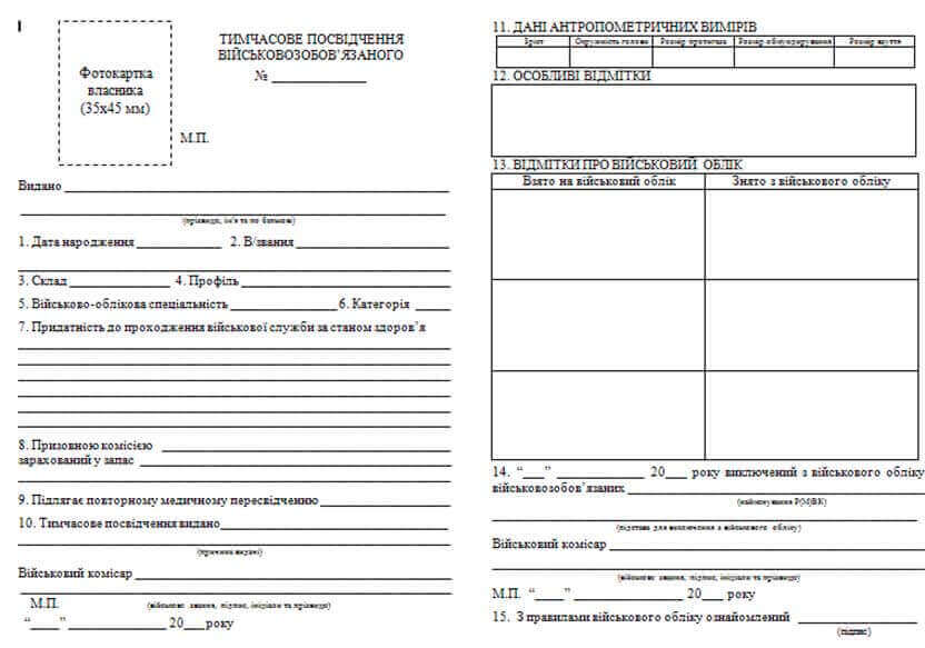 Зразки діючих військово-облікових документів